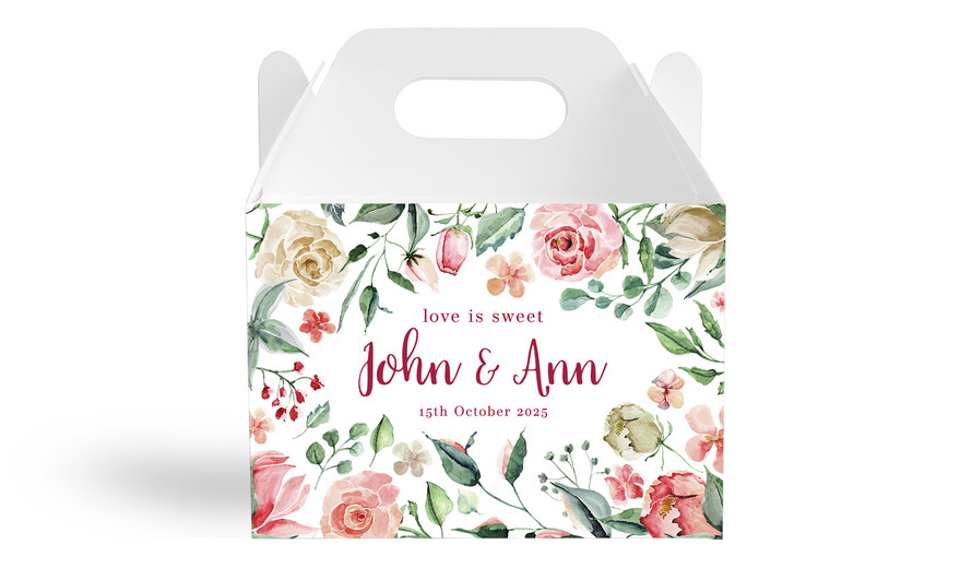 Rose Watercolour Wedding Personalised Gable Favour Box