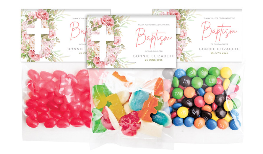 Roses Cross Christening Personalised Lolly Bag With Topper