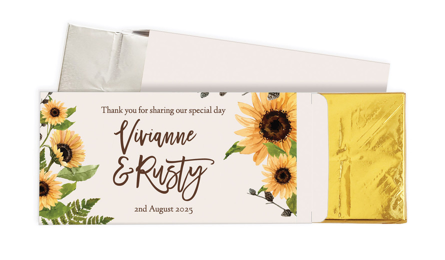 Rustic Sunflower Wedding Personalised Chocolate Bar In A Box