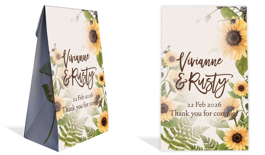 Rustic Sunflower Wedding Personalised Gusset Favour Bag
