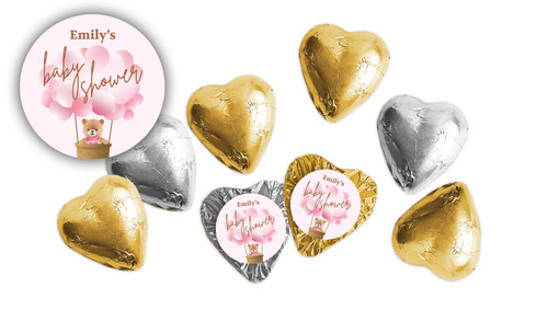 Teddy Bear Pink Custom Foil Chocolate Hearts