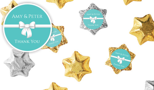 Turquoise Blue Bow Engagement Personalised Foil Chocolate Stars