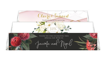 Buying your wedding chocolates from Chocablock Chocolates will give your wedding a unique flair that will stay in the minds of your guests for years to come. Not only can we do small orders of a minimum of 12 pieces, we can handle large orders, with each chocolate bar being personalised for free with individual guest names so that they can be used as place cards.