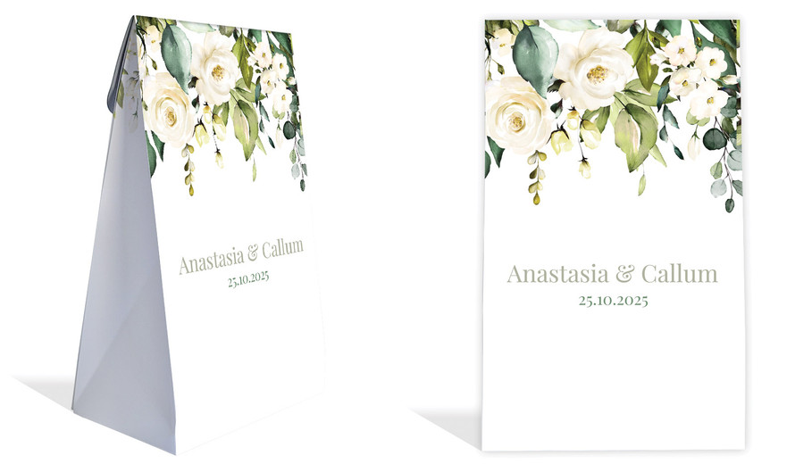 White Roses Hanging Wedding Personalised Gusset Favour Bag