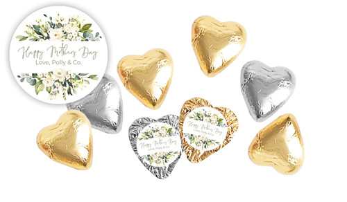 White Roses Mothers Day Personalised Foil Chocolate Hearts