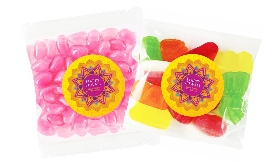Yellow And Purple Diwali Personalised Lolly Bag