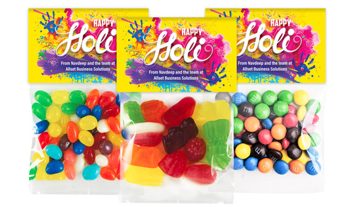 Yellow Branded Holi Custom Lolly Bag With Topper