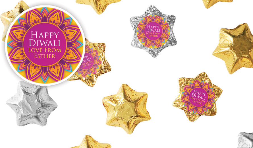 Yellow Purple Diwali Personalised Foil Chocolate Stars